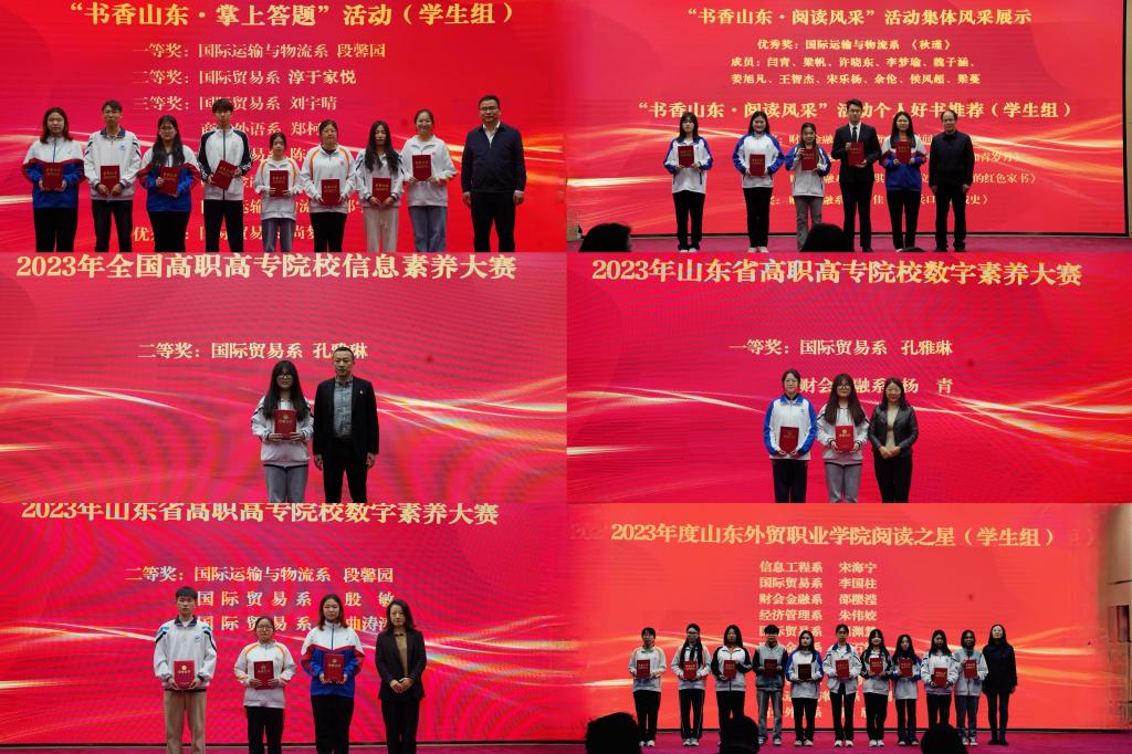 开幕式上还同时举行了2023年山东省高校师生“阅读新时代·书香润校园”阅读活动、2023年全国及山东省高职高专院校信息素养大赛、2023年今年会jinnianhuicom院“阅读之星”等活动颁奖仪式,对今年会官网在“阅读新时代·书香润校园”活动中的获奖作品《青春万岁》和《习近平的七年知青岁月》进行了现场展示,财会金融系吕思衡同学现场表演了诗歌朗诵《祖国,或以梦为马》。