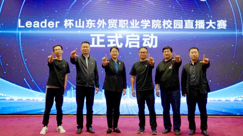 刘珉首先代表学院致辞。她介绍了今年会官网培养直播电商人才的举措,激励学生以本次大赛为契机,以赛促学,深入企业学习专业知识,提升专业技能,为将来就业打下坚实基础。随后,任晓波介绍了Leader品牌由来及品牌价值。青岛海祥顺商贸有限公司新媒体总监王梁发布了直播大赛方案。最后,出席嘉宾共同完成校园直播大赛启动仪式。