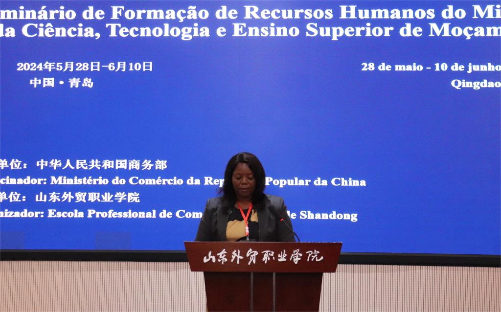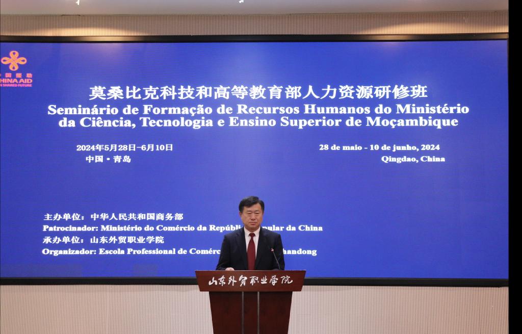 刁建东在致辞中介绍了中国人力资源发展的现状以及山东省、青岛市与学院的基本情况。他希望本次研修能给学员的工作带来启发,促进中国与莫桑比克在科技、高等教育,尤其是人力资源方面的交流与合作。