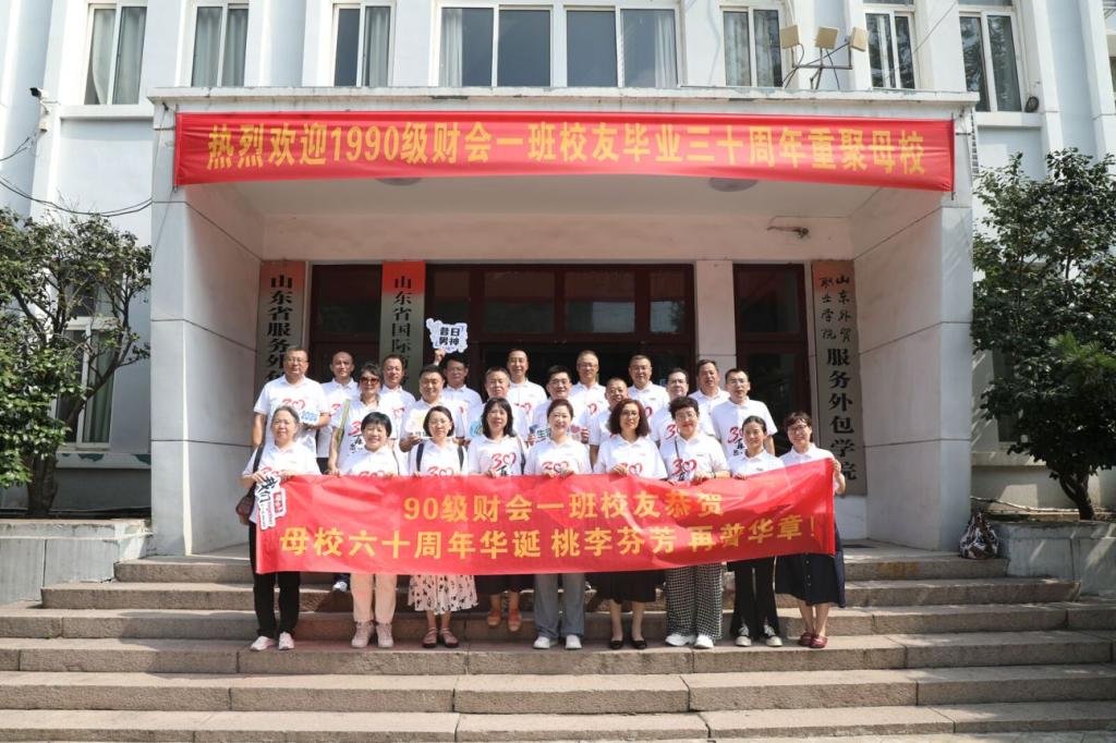 8月3日,1990级财会一班二十多位同学从世界各地重返校园。在江西路校区回到当年的教室、宿舍,参观校园、食堂等,回首青春记忆和青春往事。在李沧校区举办师生座谈会,参观校友风采展、校史馆,游览校园。