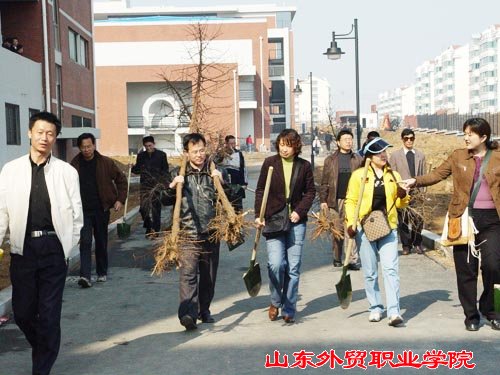 在植树现场,院领导身先士卒,带领教职员工挥锹铲土,栽种树苗。尽管手臂酸了,手磨破了,汗水湿透了衣衫,……但是大家劳动的热情依然高涨。一天下来,师生共植树280多棵。看着亭亭玉立的水杉树苗迎风摆动,校园顿添了浓浓的春意。大家感到无限欣慰,期盼着它们尽早长成参天大树,为校园增添一片绿荫。