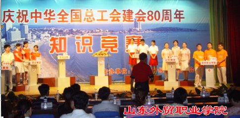 4、6月30日下午,在山东省外贸工会组织的“庆中华全国总工会成立80周年”知识竞赛决赛中,代表院工会参赛的孙浩、王玉琨、张志刚3名同学,列凯远集团、省食品公司之后,取得第三名的好成绩。