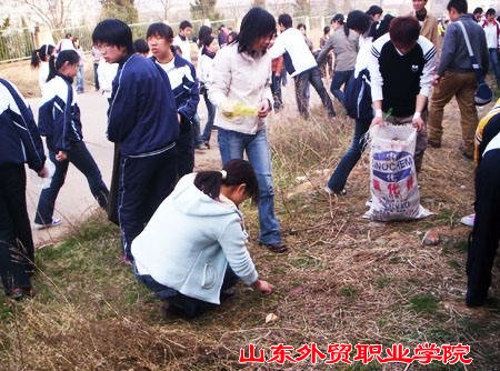 05年4月5日下午课外活动时间,国际贸易系200多名青年志愿者参加了“我为学院评估做贡献”清理卫生死角活动。志愿者们发扬了“尽己所能、不计报酬、无私奉献”的志愿精神,不怕脏不怕累,清理了从新校大门口到北崂路道路两侧100余米的白色垃圾,为学校营造良好的周边环境做出了贡献。