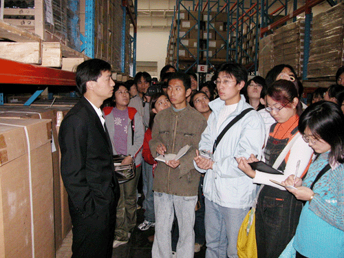 1110日国际贸易系组织高职03级物流专业全体同学参观了前湾国际物流工业园有限公司。举办此次活动的目的是为了使物流专业的同学对所学专业有一些感性认识。同学们参观了青岛啤酒的仓储中心、捷丰物流的立体仓库、集装箱场站以及现代化的青岛港。通过实地参观,听业务员讲解,提问等方式,使同学们对自己所学专业有了更深的了解。