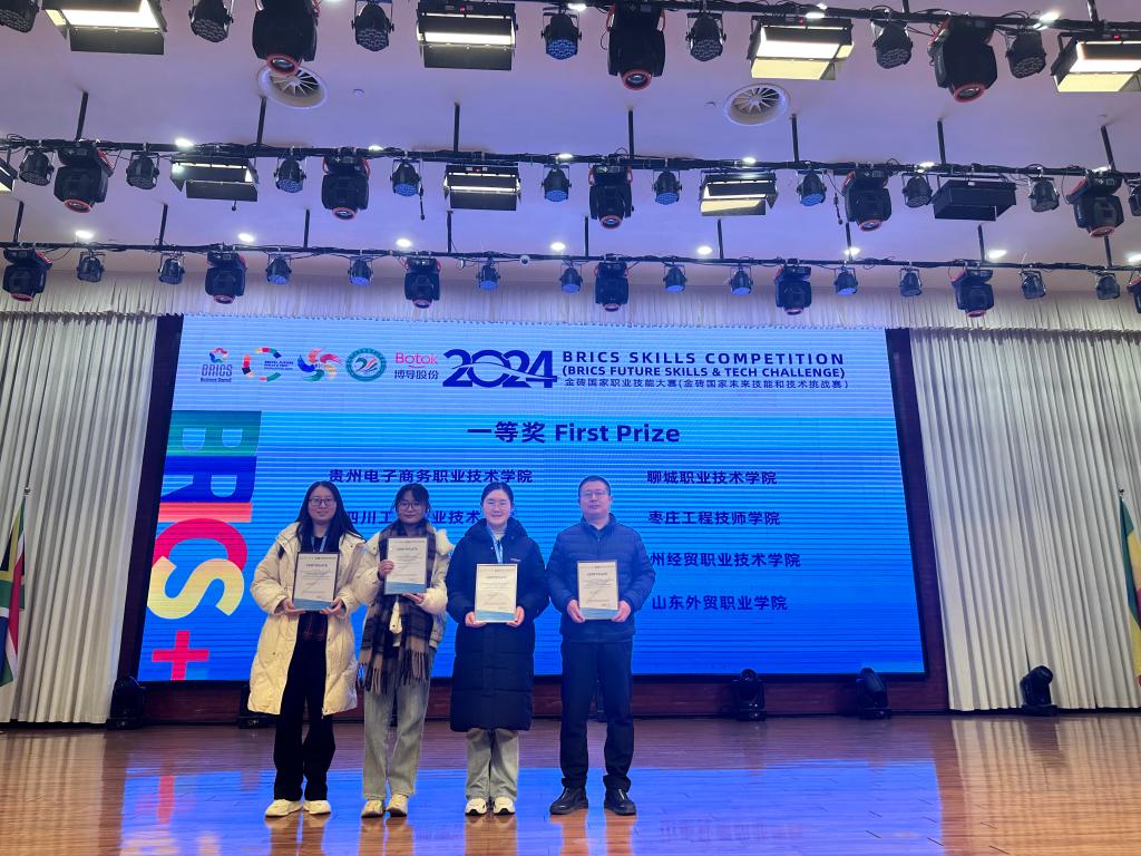 12月7日,2024年金砖国家职业技能大赛“直播电商运营”赛项国际总决赛在贵州电子商务职业技术学院顺利举行,来自全国80所院校的80支晋级队伍同台竞技,今年会官网跨境电子商务系徐彬、宗胜春老师指导,教师闫静雯和23级跨境电商专业学生牛焕妮、邱明玉组成的师生参赛队获得一等奖。