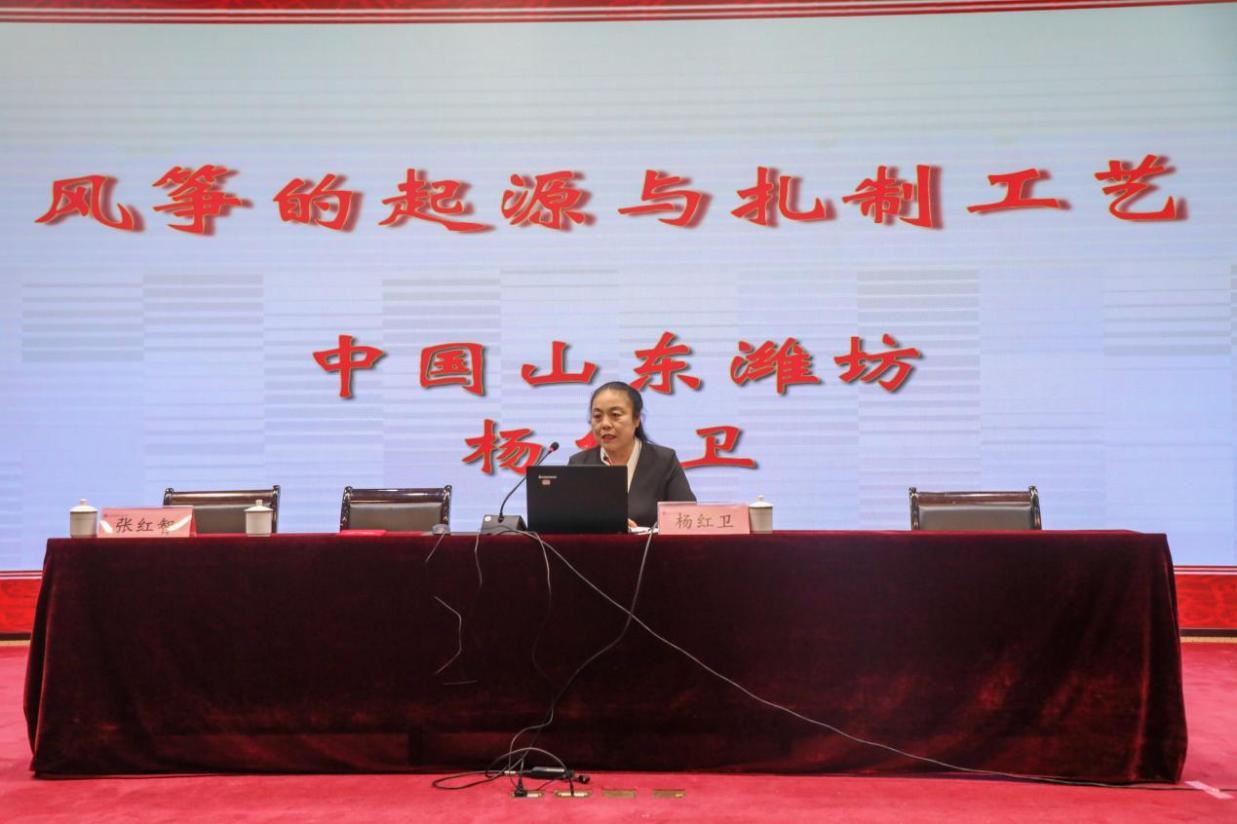 报告过程中,杨红卫结合自身非遗传承经历,通过丰富多样的图片资料与制作精良的实物介绍了潍坊风筝“选材讲究、扎糊精巧、绘画艳丽”的地域特色与“扎、糊、绘、放”核心技艺。谈及职业技能培养与非遗传承,杨红卫以风筝制作中“每一道工序都是时间与汗水的积累”为例,寄语学子:“职业技能如同风筝骨架,需在反复打磨中筑牢根基;非遗传承更要守住传统之‘根’、拥抱创新之‘魂’,以专注与匠心让古老技艺焕发新生。”