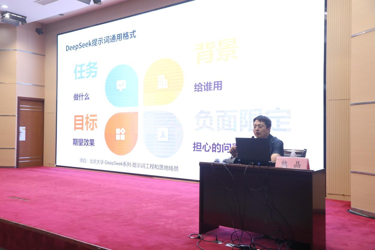 曲阜师范大学熊晶教授聚焦人工智能与教育融合,以“拥抱AI,智教未来”为主题,从“由DeepSeek说开来”切入,依次围绕办公、教学、科研场景中AI技术的应用展开讲解,并深入分析了人工智能与教育融合的机遇与挑战,全面展现了智能技术重塑教学形态的前沿趋势。