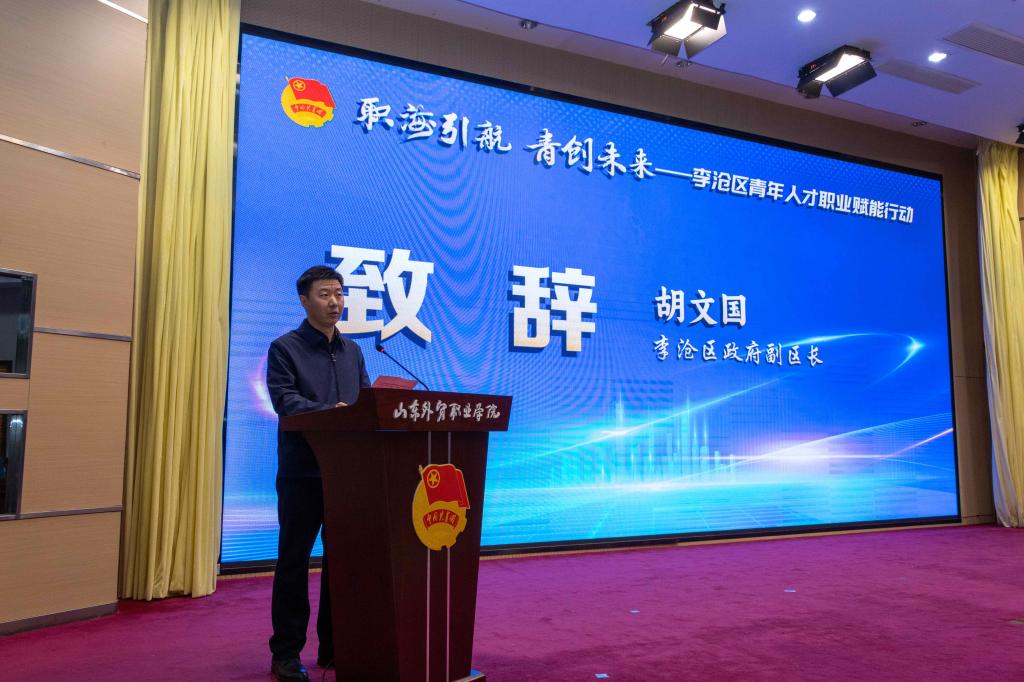 随后,胡文国代表李沧区政府致辞。他指出,青年外贸人才是李沧提升城市开放能级、加快高质量发展极为宝贵的战略资源和核心动力,政府将不断优化政策环境,强化资源对接,为青年就业创业保驾护航。