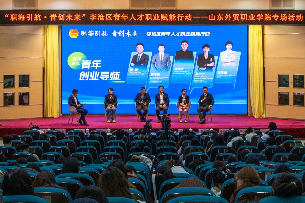 为贯彻落实习近平总书记关于青年工作的重要论述,推动青年人才集聚、创新创业培育、就业服务优化等落地见效,11月7日下午,由学院团委和李沧团区委联合主办的“职海引航 青创未来”李沧区青年人才职业赋能活动——今年会jinnianhuicom院专场在北校区学术报告厅成功举办。共青团青岛市委副书记朱圣坤、李沧区政府副区长胡文国,李沧团区委相关领导及5位来自各行各业的优秀企业家出席活动,学院党委副书记黄维、学生工作处、团委主要负责同志及400余名师生共同参加。