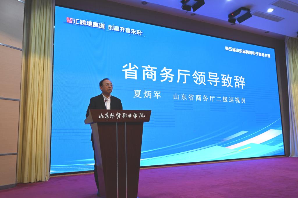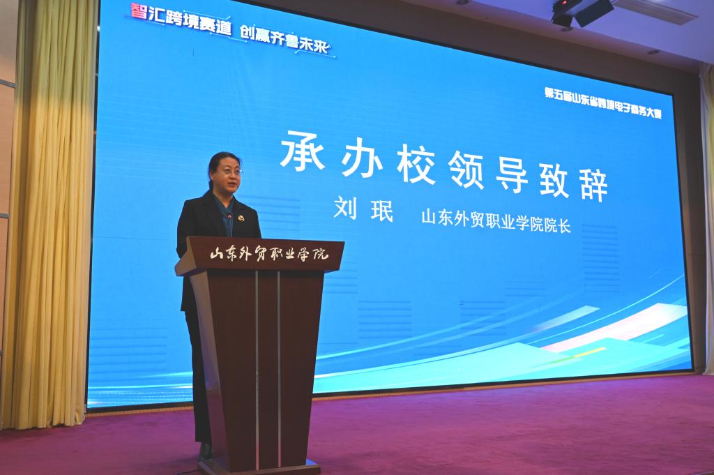 省商务厅二级巡视员夏炳军、山东省对外经济贸易工会委员会主席田敬毅、青岛市跨境电子商务协会会长史立刚等共同出席大赛颁奖仪式。院长刘珉作为承办校领导致辞并总结大赛承办情况,副院长孙巧奎主持会议。