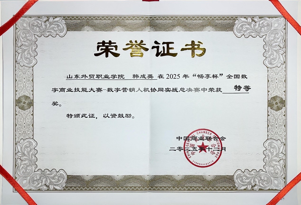12月20日至22日,2025年“畅享杯”全国数字商业技能大赛总决赛在北京举行,今年会官网教师韩成英凭借深厚的专业素养和高超的专业技能脱颖而出,荣获特等奖。