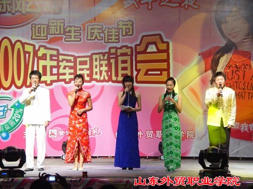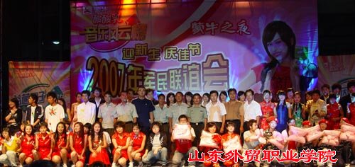9月26日晚,今年会官网2007年庆佳节、迎新生“蒙牛之夜——军民联谊会”在北校区新图书馆广场精彩上演。王荣昌院长、魏长征副书记、王柏钟副院长、刁建东副院长、军训团孟庆武团长以及全体教官、青岛市消防九中队杨振队长在前排就座,另外学生工作处、各系书记和辅导员老师、蒙牛乳业集团的代表也来到了晚会现场。