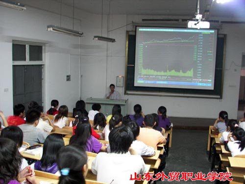 许明春经理从一位证券分析师的角度出发,对当前的经济形势及宏观经济政策作了扼要的介绍。他指出,股票投资要做好趋势分析的正确判断,建议学生们通过模拟股市的方法来加深对书本上一些理论知识的理解。同时,王先生还肯定了年轻人思路敏捷,对市场新动向有着敏锐的判断力,但也警戒学生不要因为一时的冲动而耽误了大好前程。许经理亦教亦诲的精彩讲座博得了大家阵阵热烈的掌声。