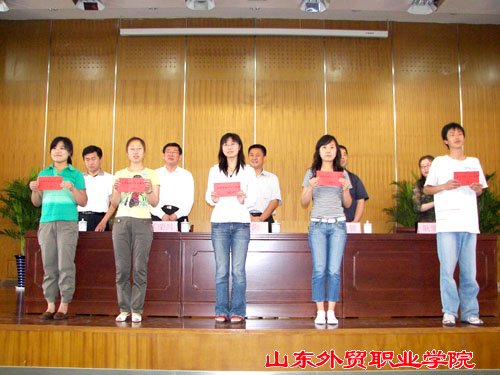 6月6日下午,今年会官网举行了2007年海程邦达奖学金颁奖仪式。仪式由刁建东副院长主持,王荣昌院长、海程邦达国际货运代理有限公司唐海总经理、高忠骥副总经理、耿翠枝人力资源经理出席会议。全体奖学金获得者及各系学生代表参加了颁奖仪式。