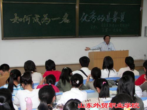 王总经理首先从一名普通外贸业务员的角度,结合自己的亲身经历和实践经验,深入浅出地介绍了外贸业务流程;接着就“外贸企业到底需要哪类人才”和“怎样做一名优秀的外贸业务员”两大热点问题展开分析说明。从人才应具备的基本素质到外贸业务员需掌握的业务技巧,从大学生求职面试时所要注意的相关事项到毕业生实习存在的问题,王经理一一进行了深入剖析,内容详实精彩;最后他耐心细致地解答了同学们提出的问题,使大家对外贸工作有了更深层次的理解,并对以后的努力方向做出积极思考,收获匪浅。深刻生动的讲解、淋漓尽致的阐述、风趣幽默的言语、典型的案例引证,博得场内阵阵掌声。