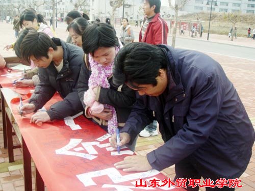 12月8日中午,由经济管理系团总支组织的“纪念一二·九运动七十一周年”签名活动在今年会官网新餐厅门口隆重举行。特学生工作处苏春鹏处长老师参加了此次活动。到场的同学们纷纷在“牢记历史 勿忘国耻 振兴中华” 的条幅上签名,同时,同学们写下了自己对“一二•九”精神的理解,写下自己对母校、对祖国的铮铮誓言。