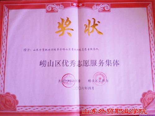 经济管理系青年志愿者服务队坚持 “从小事做起”、“自发献爱心”的宗旨。2004年10月23日,发起了“大学生献爱心-牵手崂山区聋哑学校”的手拉手互助活动;2005年,组织了两次无偿献血活动;今年,参与了与李沧区虎山路社区的联谊活动、青岛市的住房情况调查、先后组织各类献爱心及联谊活动8次,受到共青团崂山区委和社会各界的高度评价。今年四月,被共青团崂山区委、崂山区文明办授予“崂山区优秀志愿者服务集体”称号,并颁发了荣誉证书。