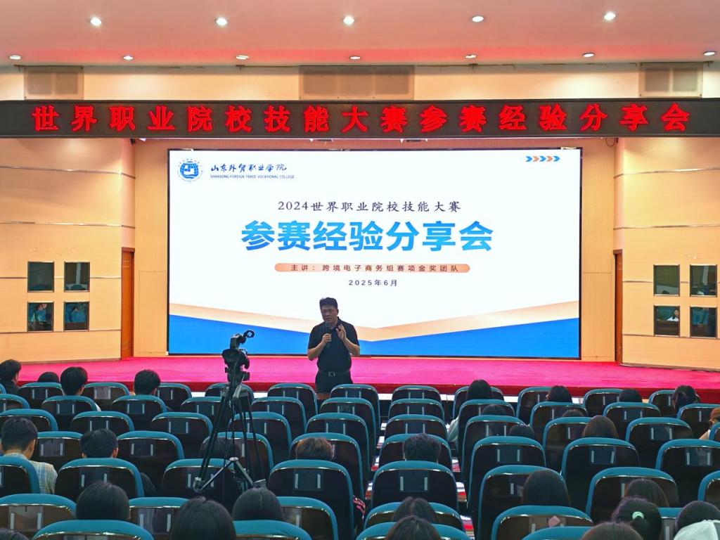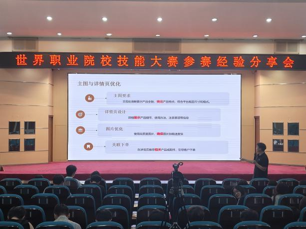 为鼓励学生积极参与实训项目,激发竞赛热情,6月3日晚,跨境电子商务系在学术报告厅举办世界职业院校技能大赛跨境电子商务组赛项参赛经验分享会。2024级全体学生参会,跨境电商系主任张鹏刚、指导教师团队及参赛选手现场交流备赛经验与参赛心得。