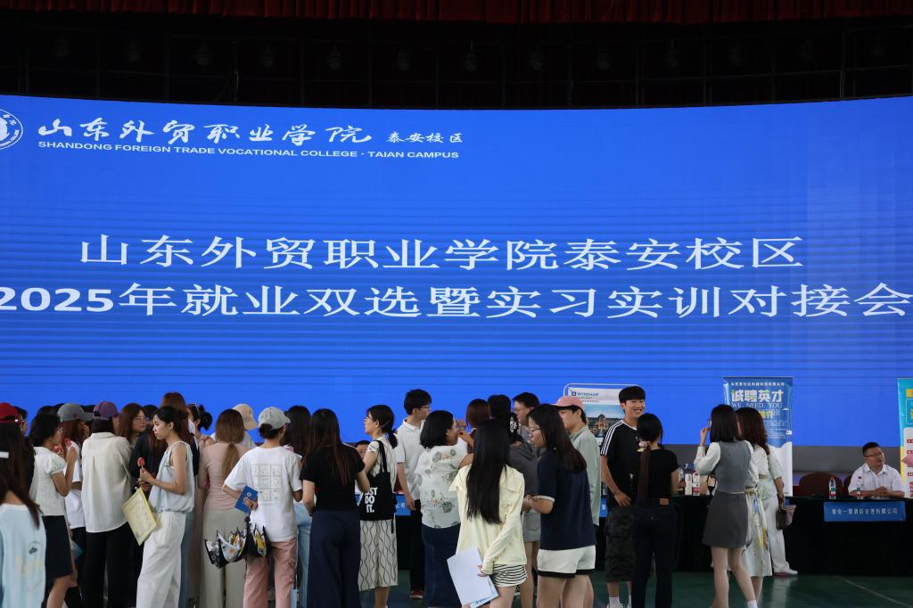 为更好地服务我校毕业生,大力构建毕业生与用人单位之间的交流平台,6月12日,泰安教学部在泰山会堂举办2025年就业双选暨实习实训对接会。