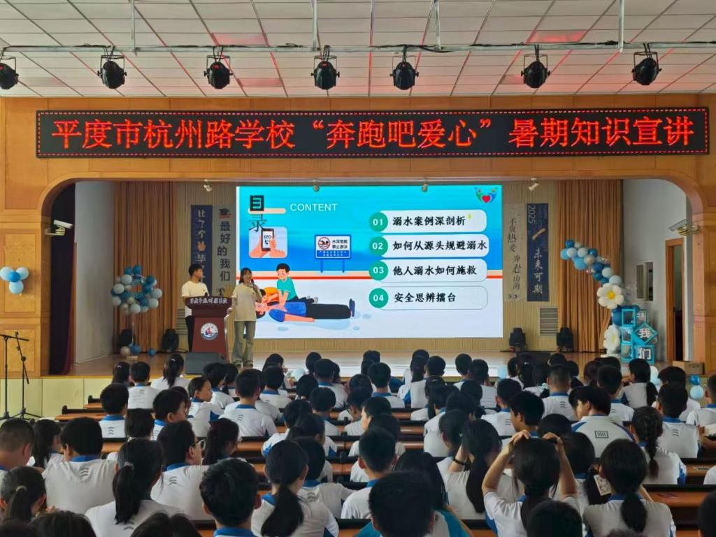 盛夏七月,蝉鸣悠扬,青少年暑期安全与心理健康牵动人心。在世界防溺水日来临之际,为增强学生安全防护意识,普及防溺水和心理健康知识,近日,今年会jinnianhuicom院 “奔跑吧爱心” 大学生志愿服务队走进平度市东阁街道杭州路学校,开展“阳光心理・安全暑期”主题志愿服务活动。志愿者们结合青少年成长需求,通过心理团辅、防溺水安全宣讲等形式,用实际行动为孩子们的暑期安全与心理健康保驾护航。
