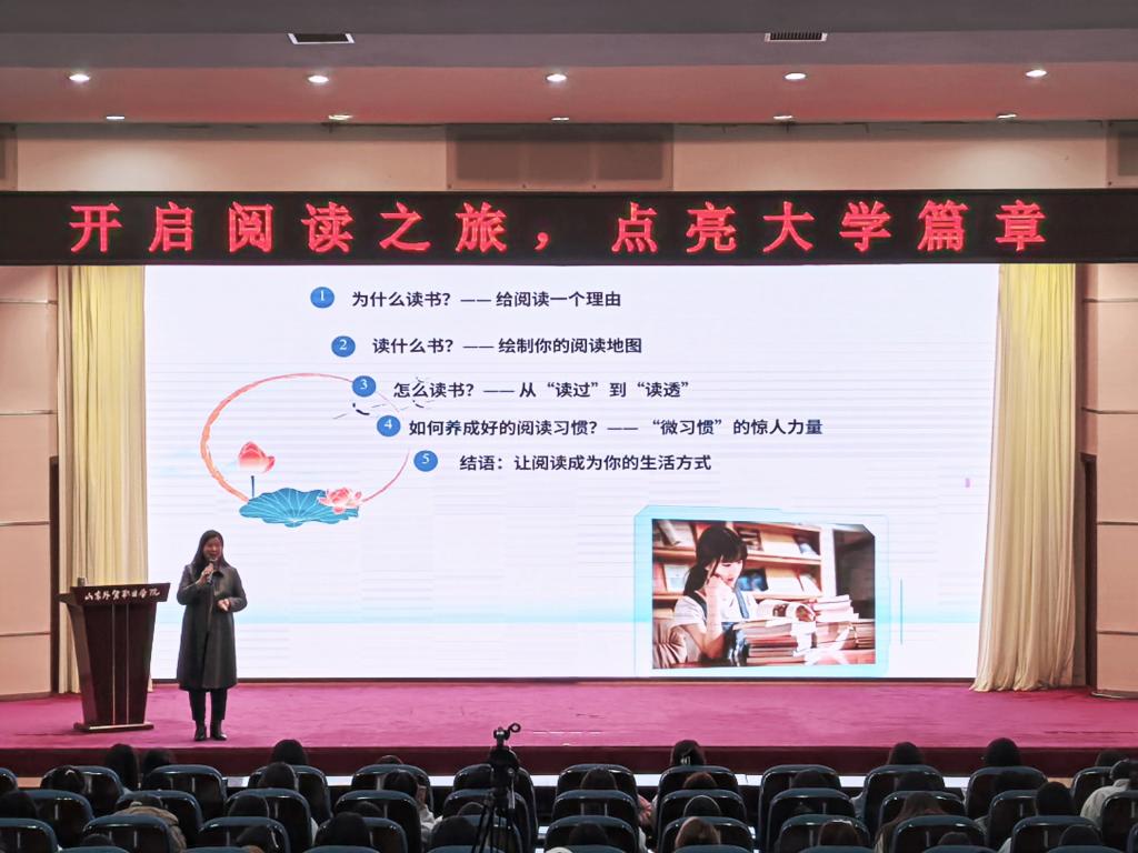 为提升大学生阅读素养和阅读能力,营造书香校园的浓厚氛围,10月23日下午,图书馆和基础教学部在学术报告厅联合举办“开启阅读之旅,点亮大学篇章”大学生阅读指导讲座。活动特邀基础教学部副主任李艳华担任主讲嘉宾,与300余名师生共话阅读之美,开启一场启迪心灵的智慧之旅。