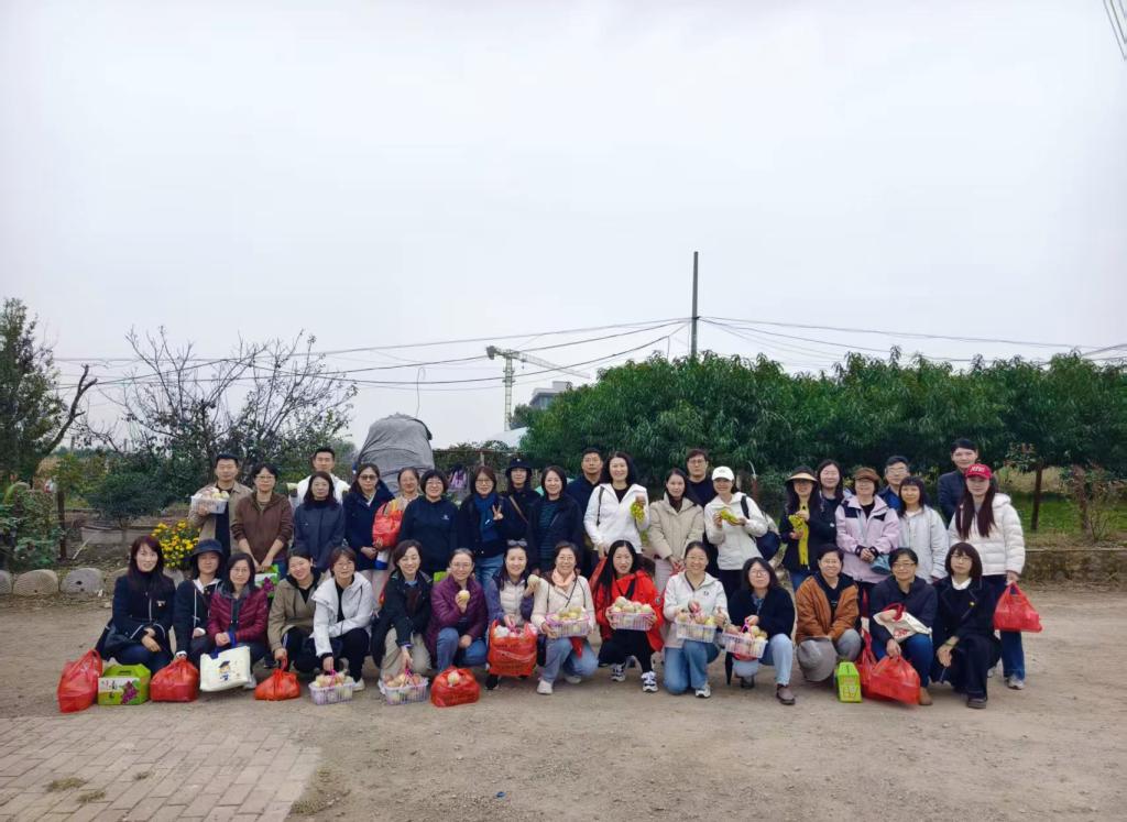 首先,老师们来到了艾山采摘园,通过果农讲解,对园区的特色鲜果和种植特点有了更深入的了解,亲手采摘着颗颗饱满的苹果和葡萄,享受着田园采摘的乐趣。随后,大家来到乡道培训书院进行艾草锤手工制作,手工艺人为大家进行现场教学,老师们纷纷动手,将传统与创新相结合,精心制作出了一个个造型独特、功能实用的艾草锤。之后,大家跟随当地向导步伐,漫步村庄,了解了乡村振兴示范片区的整体规划、文旅资源开发利用等情况,通过实地走访感受到乡村振兴示范片区建设带来的巨大变化。随后,大家分组参与了丰富多彩的趣味团建活动,活动设置了踢毽子、桃花朵朵开、棋牌竞赛等多个团队合作项目,老师们在活动中默契配合、积极协作,充分彰显了团队精神。