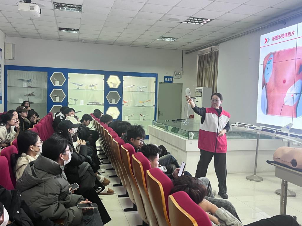 在教学组织方面,课程采用“理论精讲+实操演练+模拟考核”三段式教学模式。理论教学中,红十字会讲师结合真实急救案例,系统讲解CPR与AED的急救原理与操作要点;实操环节依托专业航空模拟客舱实训基地,配备标准化CPR模拟人及AED教学设备,让学生在高度仿真的场景中反复演练,教学团队与培训讲师全程跟踪指导,及时纠正操作偏差;最终,由红十字会统一组织考核,合格者直接获得CPR+AED急救技能证书。24级空中乘务专业1班和2班共85名学生顺利通过考核并获证。