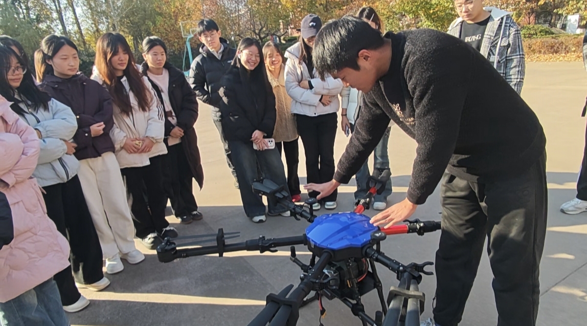 实训中,学生们在专业人员指导下,学习了无人机操作理论与飞行法规,体验了从设备检查、起飞悬停到模拟飞行的全流程实操。实训有效锻炼了学生的实践能力,加深了他们对无人机技术在“最后一公里”配送等供应链场景中应用的理解。
