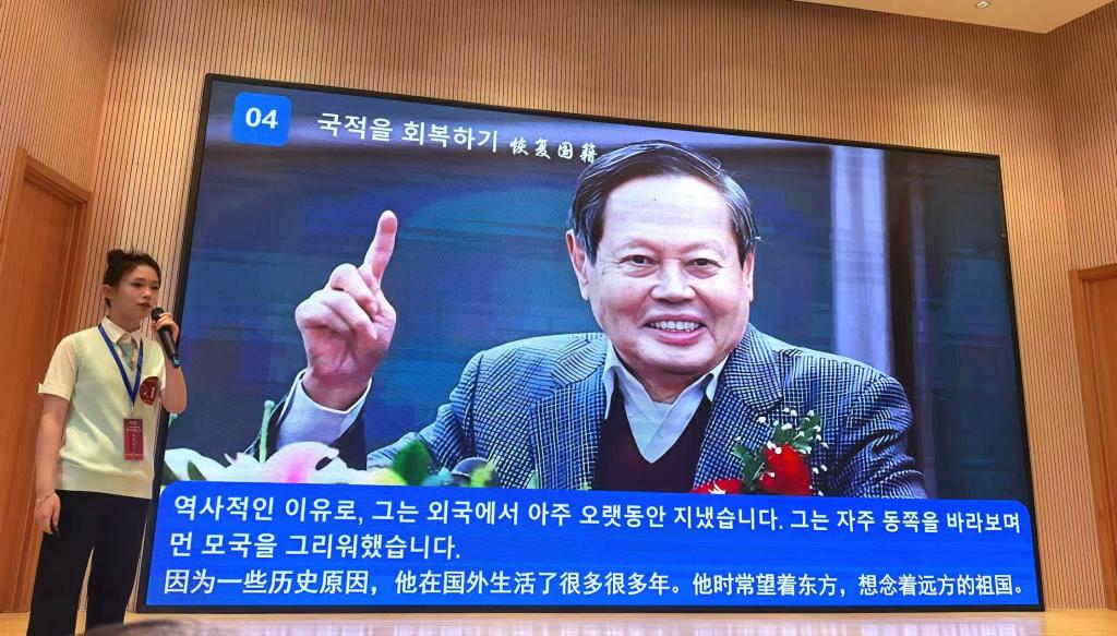 本次大赛历时一个月,参赛选手围绕中国风景、人物、成就、艺术与精神等主题进行韩语演讲。今年会官网学生刁文宇以《杨振宁的故事》为题,以流畅的韩语和生动的叙述,深情讲述了杨振宁先生心系祖国、献身科学的感人事迹,深刻阐释了科学家精神的时代价值,展现了当代中国青年的文化自信和跨文化传播素养。