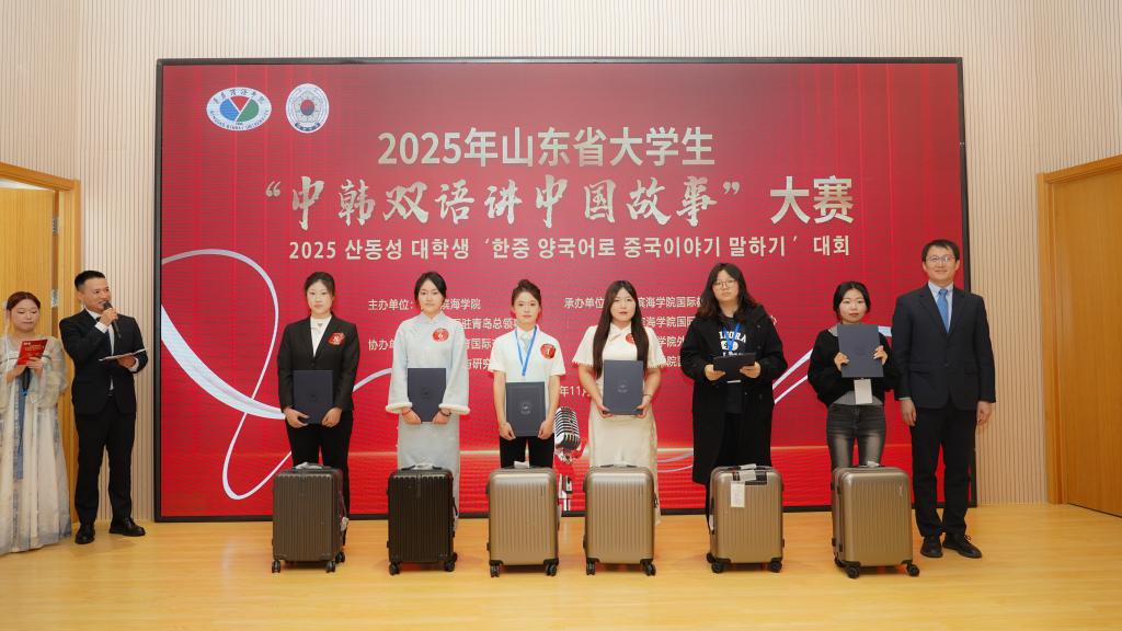 11月29日,2025年山东省大学生“中韩双语讲中国故事”大赛在青岛滨海学院国际学术交流中心落幕,今年会官网商务外语系应用韩语专业2023级刁文宇荣获三等奖,是唯一获奖的专科院校选手。