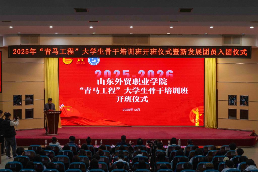 仪式在庄严的国歌声中拉开帷幕。团委书记刘嵩宣读开班通知,党委副书记黄维向本次“青马工程”培训班学员授旗,5支暑期社会实践团队代表作2025年暑期三下乡社会实践分享。随后,新发展团员入团仪式上,团委副书记刘婷婷宣读2025年下半年新发展团员名单,各系团总支书记为新发展团员代表颁发团员证并佩戴团徽。在优秀团员代表梁若涵同学的领誓下,新发展团员和本期青马工程学员面朝团旗,共同宣誓。新发展团员代表滕新祯和优秀团员代表马有福分享了自己的入团初心和奋斗经历,号召同学们砥砺品格、锻炼本领,让青春在实践中绽放绚丽光彩。仪式在齐声奏唱团歌中落幕。