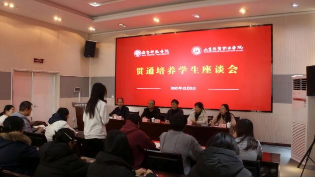 在学生座谈会上,周健院长向贯通班全体学生详细介绍了齐鲁师范学院经济与管理学院的师资优势、学科平台以及贯通培养的课程体系。她通过分享优秀校友的发展案例,勉励同学们做好学业与职业规划,打破“专科”与“本科”的刻板界限,扎实学习,全面提升核心竞争力。在互动环节,学生们就本科阶段的发展方向、学习环境、专科期间的学习重点、证书考取与竞赛准备等问题踊跃提问。双方领导和老师一一给予了耐心细致地解答。周健院长建议同学们结合自身优势与行业趋势,对考研、考公、就业等多元发展路径进行科学规划。徐烨副主任在交流中表示,系部全体教师将持续为同学们提供全方位的学业支持与成长指导,鼓励同学们随时与老师沟通学习与发展需求。孙茂峰书记在总结中叮嘱同学们要牢记师长教诲,牢牢抓住数学、英语及专业核心课程等关键学习环节,积极投身专业技能竞赛,为顺利转入本科阶段打下坚实基础。