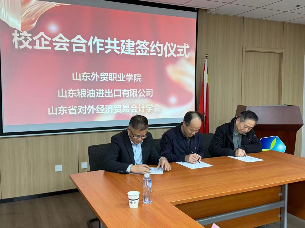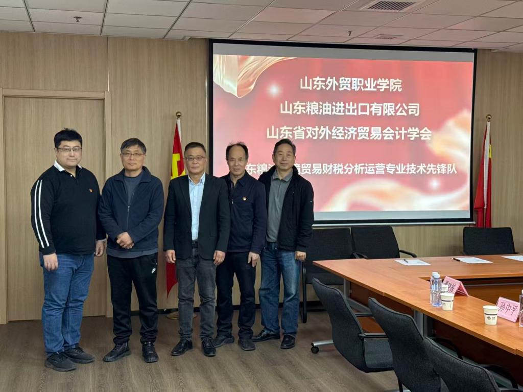 12月3日,财会金融系与山东粮油进出口有限公司及山东省对外经济贸易会计学会举行党建共建暨实训基地挂牌仪式,并联合成立粮油跨境贸易财税分析运营专业技术先锋队。山东粮油进出口有限公司董事长韩德利与企业高管、山东省对外经济贸易会计学会副会长刘冬同财会金融系书记孙茂峰及部分班子成员和支部书记共同出席活动。