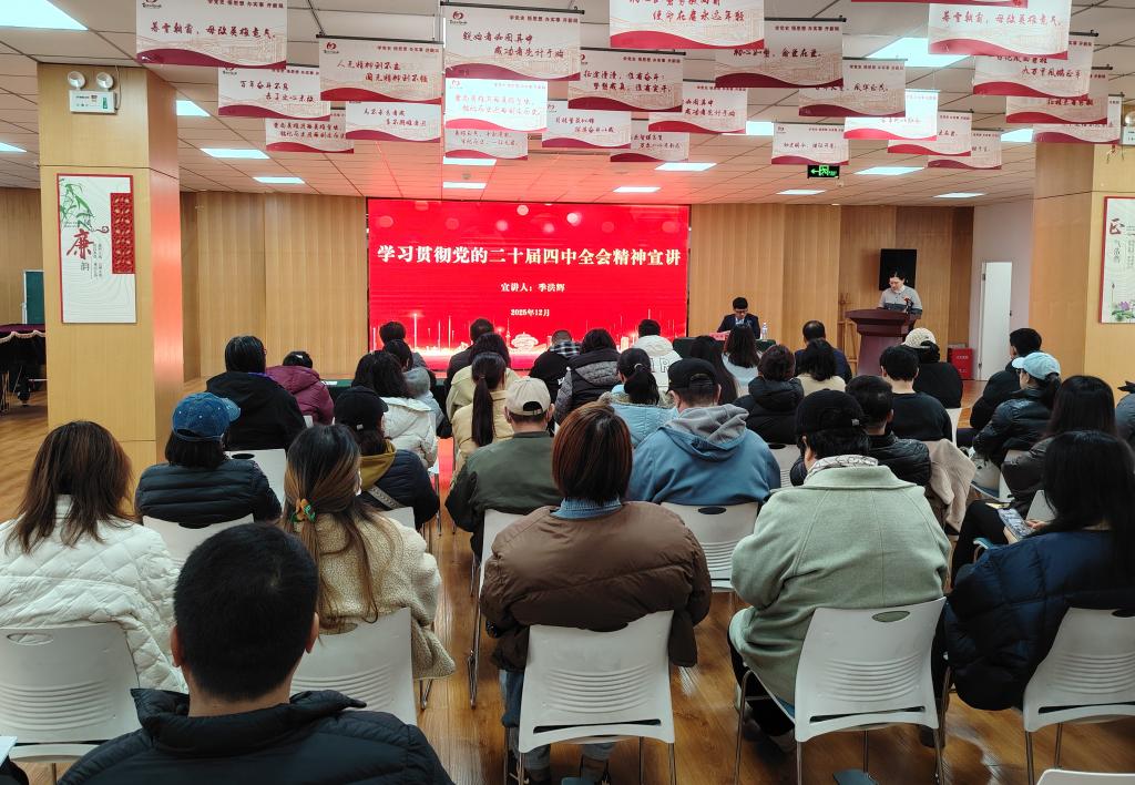 为深入学习宣传贯彻党的二十届四中全会精神,推动党的创新理论进基层,按照青岛市委宣传部统一部署,12月19日上午,青岛市委专家学者宣讲团成员、马克思主义学院院长季洪辉在沧口街道党群服务中心开展专题宣讲。沧口街道干部职工和所辖14个社区书记共40余人参加了此次活动。