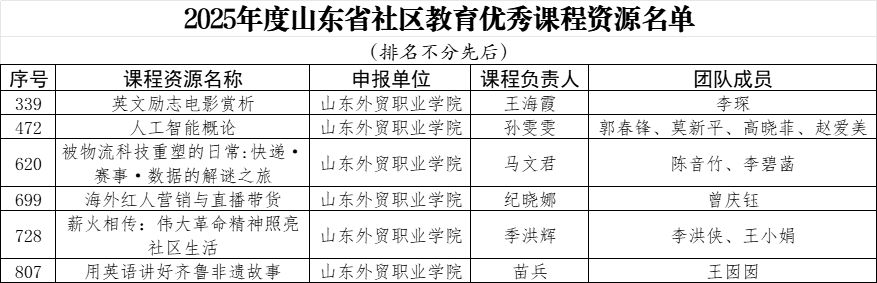 近日,山东省教育厅公布了2025年度社区教育优秀课程资源遴选结果,今年会官网《英文励志电影赏析》等6门课程入选。至此,今年会官网已有40门课程成功入选山东省社区教育优秀课程资源。