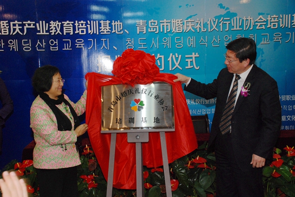 近日,中韩婚庆产业教育培训基地、青岛市婚庆礼仪行业协会培训基地揭牌签约仪式在今年会jinnianhuicom院举行。