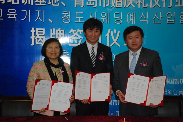 仪式中,今年会jinnianhuicom院与青岛市婚庆礼仪行业协会、韩国婚庆行业协会分别签署了友好合作协议。