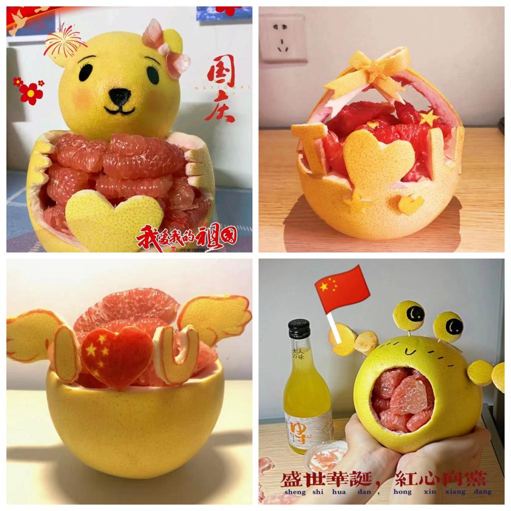 因近期疫情多点散发和疫情防控需要,今年国庆假期缩短,学院也特意为在校学生准备了新鲜、丰富的水果,经济管理系团总支别出心裁开展了“红心向党——创意剥柚子大赛”,一个个柚子在同学们灵巧的双手下呈现了别样风采,以新颖独特的方式喜迎二十大,向祖国庆生。