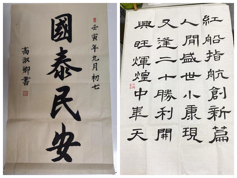 书画迎国庆,泰安校区团委组织开展了迎国庆,书法绘画征集活动,同学们用灵巧的画笔和刚劲的笔法书写、绘就了对祖国美好的祝福。