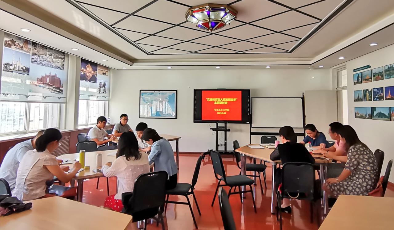 9月16日下午,马克思主义学院在外语村337室召开“党史学习教育融入思政课”主题研讨会,马克思主义学院党总支书记武传伟、院长季洪辉、副院长伊珊和全体思政课教师参加会议。