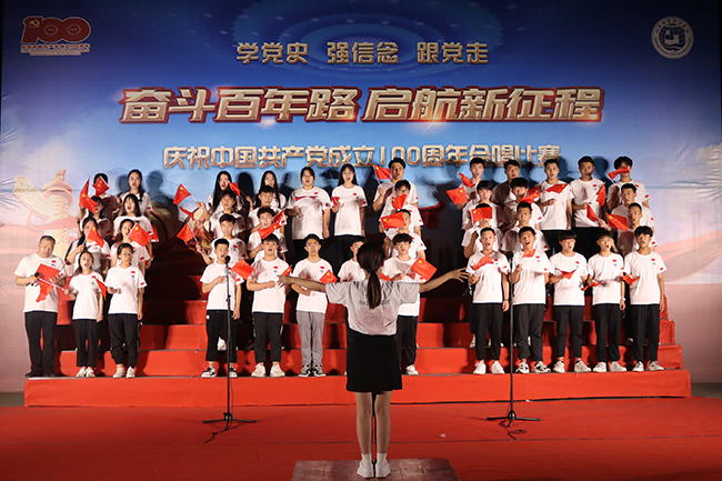 为庆祝中国共产党成立100周年,6月24日晚,泰安教学部举行了以“奋斗百年路·启航新征程”为主题的合唱比赛,所有在校班级参加,教学部班子成员出席活动,并担任比赛评委,为获奖班级颁奖。