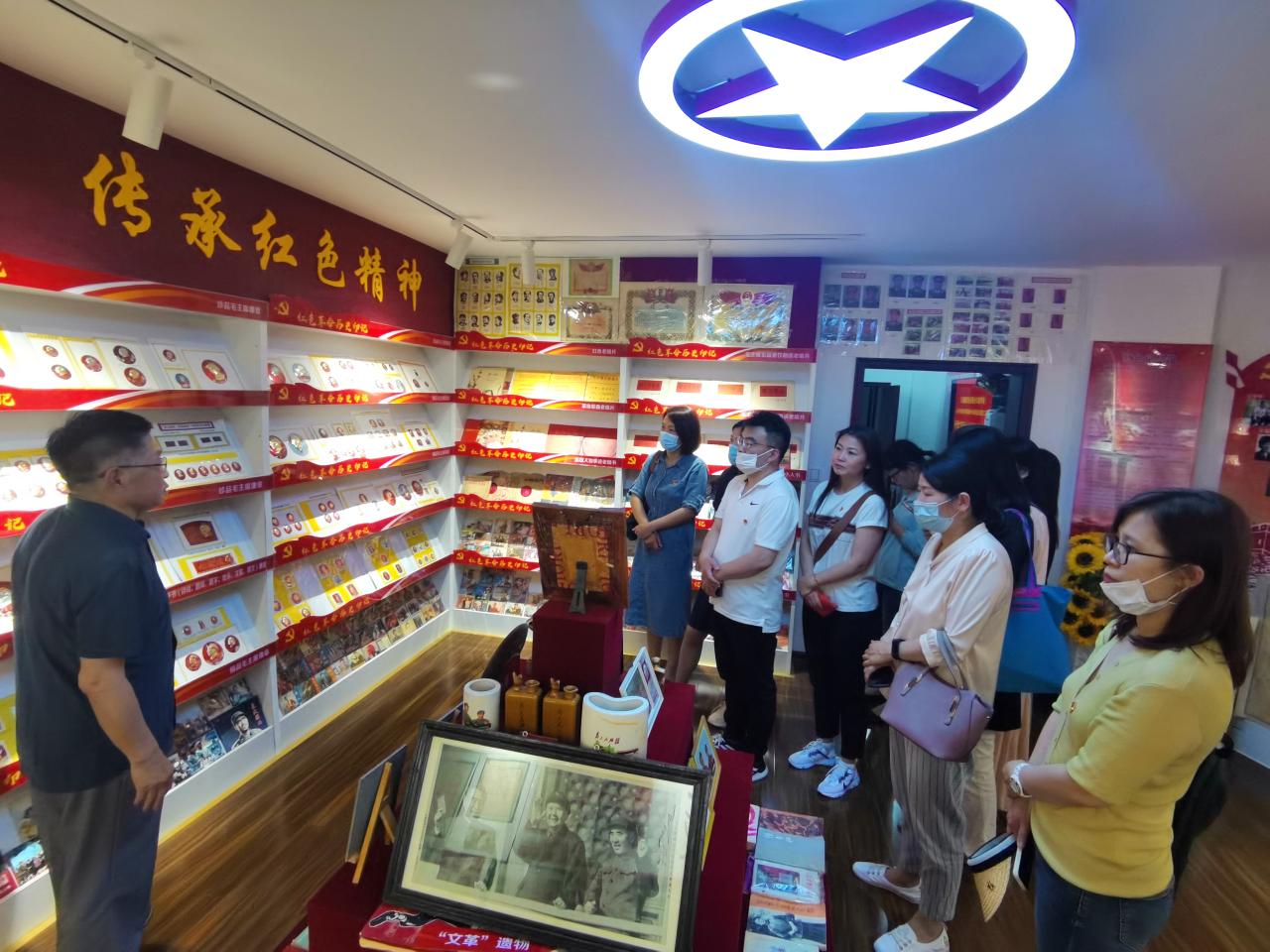 在“老干部红色记忆馆”里,青岛市“社区优秀共产党员”、收藏家、78岁的退休干部金成龙同志为党员老师们上了一节生动的党课。他生动细致地介绍了多年来不辞辛苦收藏的毛主席像章、革命时期的报纸、红色唱片、粮票、国库券等珍品,将每一件藏品背后的革命和建设历程故事娓娓道来。大家认真聆听,不时提问交流,气氛积极和谐。党员们深刻感受到老人对党炽热的爱,对祖国赤诚的心,对社区无私的奉献,无不为之动容,为其称赞。赏藏品,忆伟人,铭党恩,党员老师们如同穿梭在历史长廊中,从珍贵的素材中感受党和祖国昔日的艰辛和今日的发展壮大。