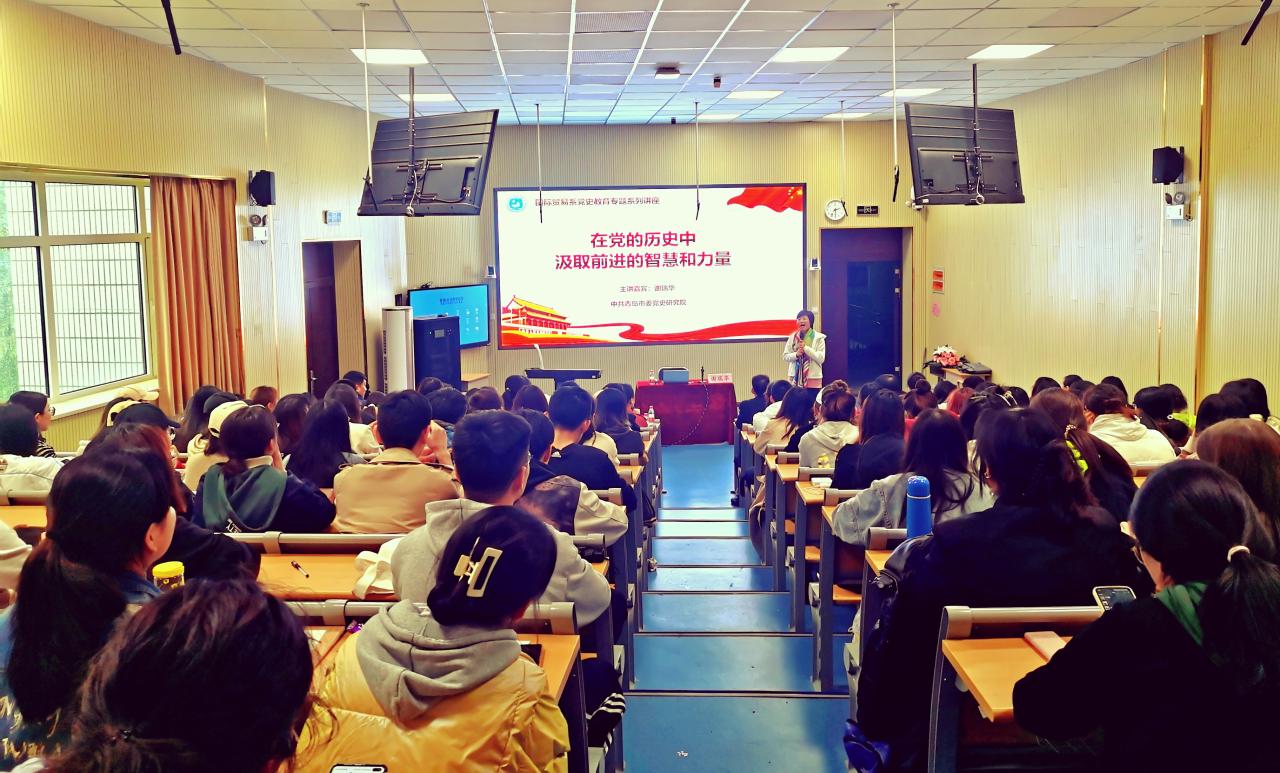 为认真学习贯彻落实习近平总书记在党史学习教育动员大会上的重要讲话精神,4月22日下午,国际贸易系邀请中共青岛市委党史研究院宣教处处长谢瑞华同志讲授第二期党史学习教育专题系列党课,全体党员教师及154名入党积极分子参加了学习。
