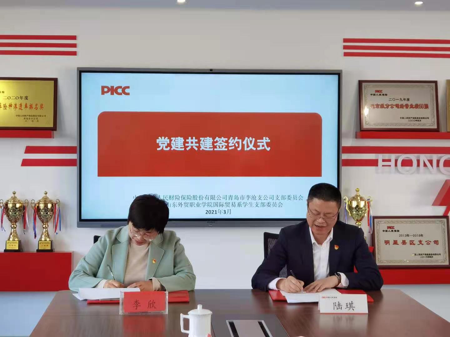 会后双方签署了支部党建共建协议书并参观中国人保李沧支公司业务办理大厅和相关工作区域。